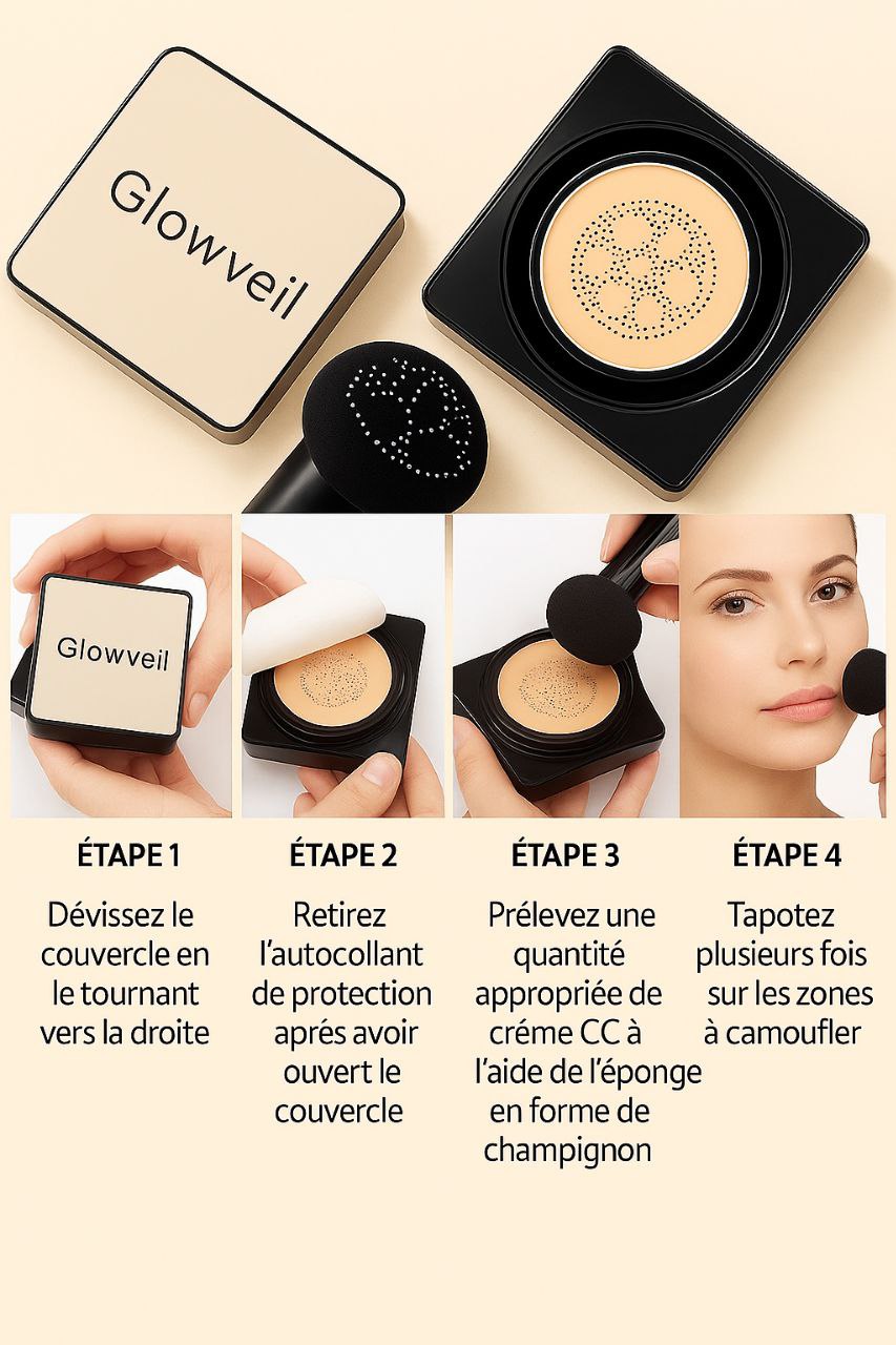 GLOWVEIL CC Crème à pinceau de champignon - Le Voile de Lumière qui Sublime Votre Peau